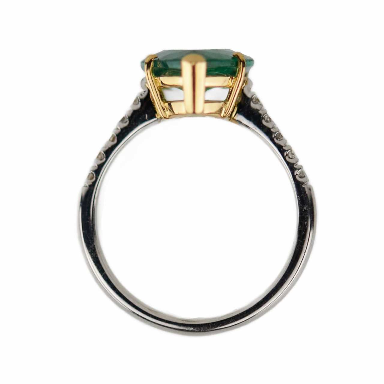 Золотое кольцо 18 К с изумрудом каплевидной формы и бриллиантами. Диаманты 21th century г.