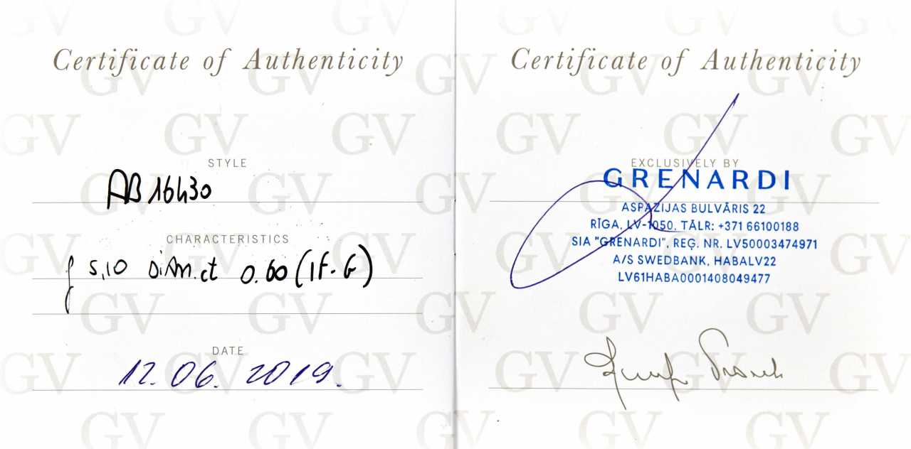 Золотое кольцо с бриллиантами фирмы Giorgio Visconti. 0,60 карат бриллиантов. IF-G. Вес: 5,10 гр. Размер: 16,5. Оригинальный футляр и сертификат производителя прилагается.