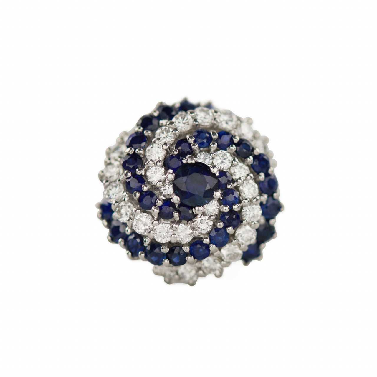 Золотое кольцо спиралевидной формы с сапфирами и бриллиантами. Сапфир 21th century г.