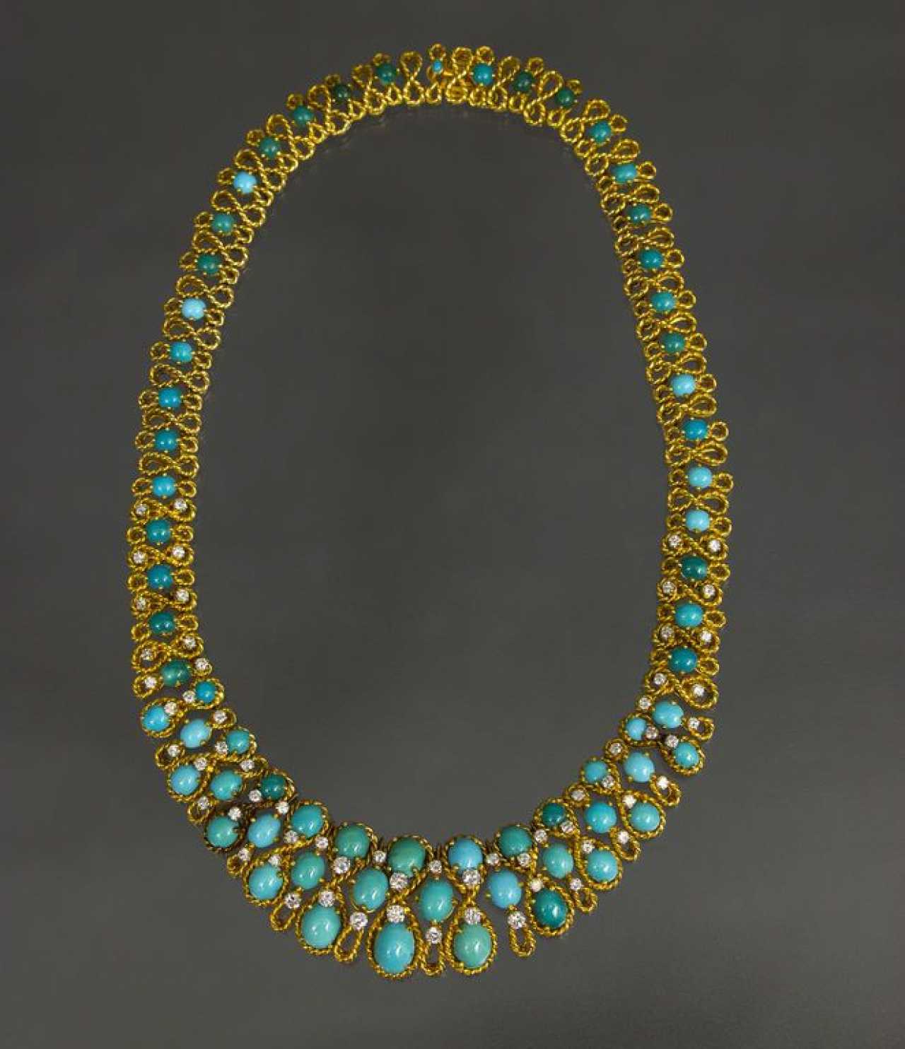 Золотое колье с бриллиантами и бирюзой Золото 21th century г.