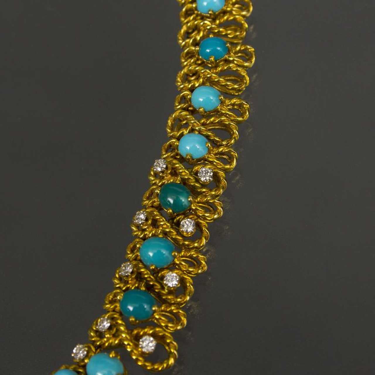 21-го века. Франция, № 31073. Золото 585 пробы, бриллианты, бирюза. Вес 127 г, длина 22 см.