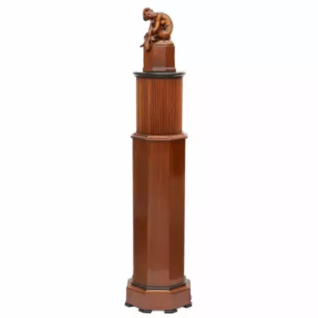 Колонна-консоль в стиле Арт-Деко. С резной фигурой обнаженной дамы и лисы. 20 век. Представляет собой комбинацию октогональной колонны на постаменте с канелированным цилиндром и площадкой сверху. Высота колонны 113 см. С фигурой: 144 см.