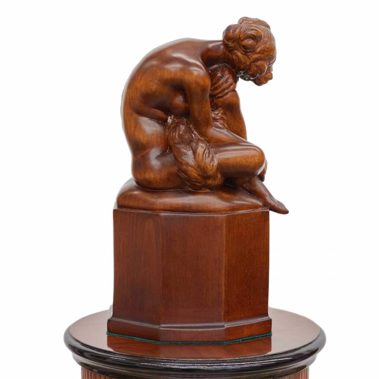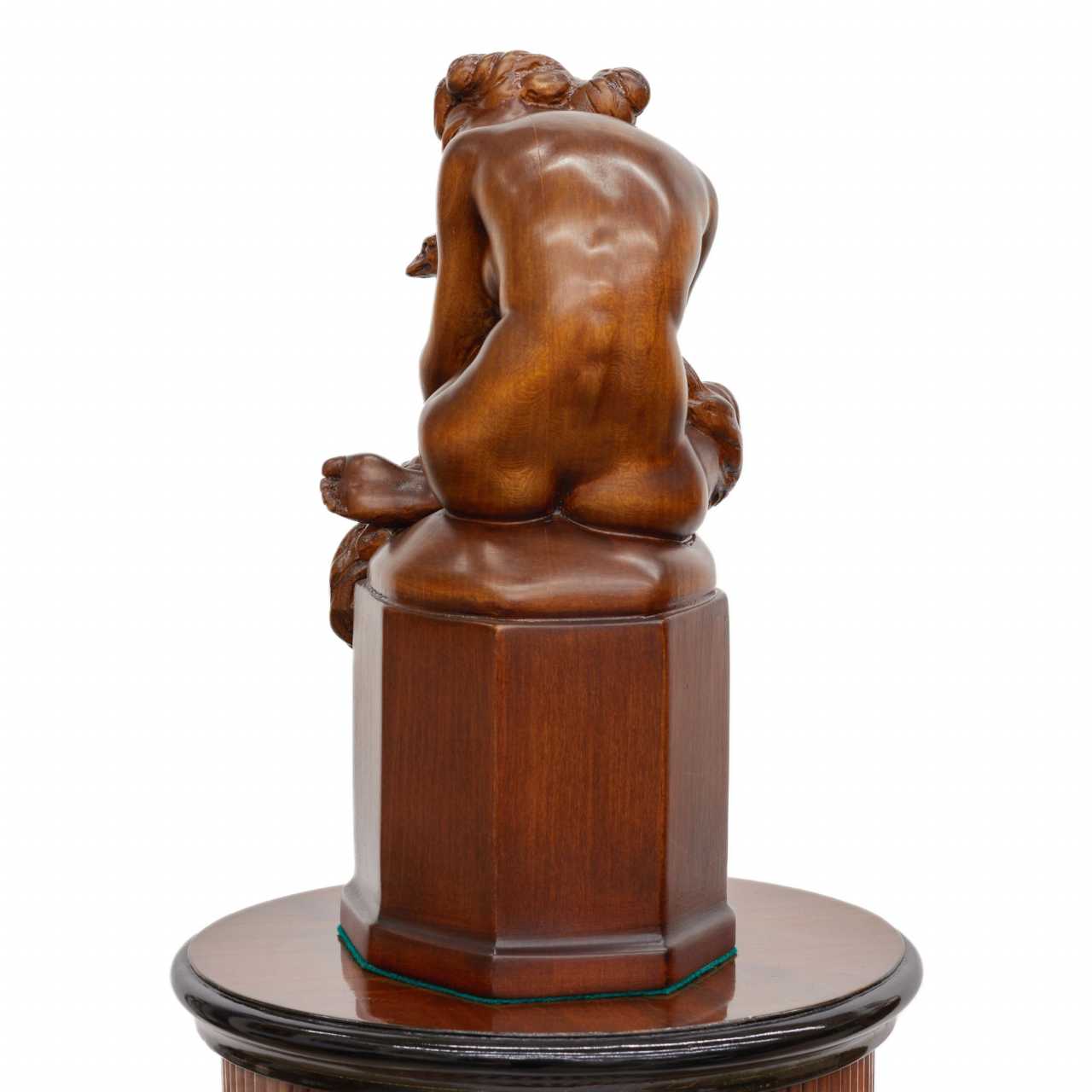 Колонна-консоль в стиле Арт-Деко. С резной фигурой обнаженной дамы и лисы. 20 век. Дерево 20th century г.