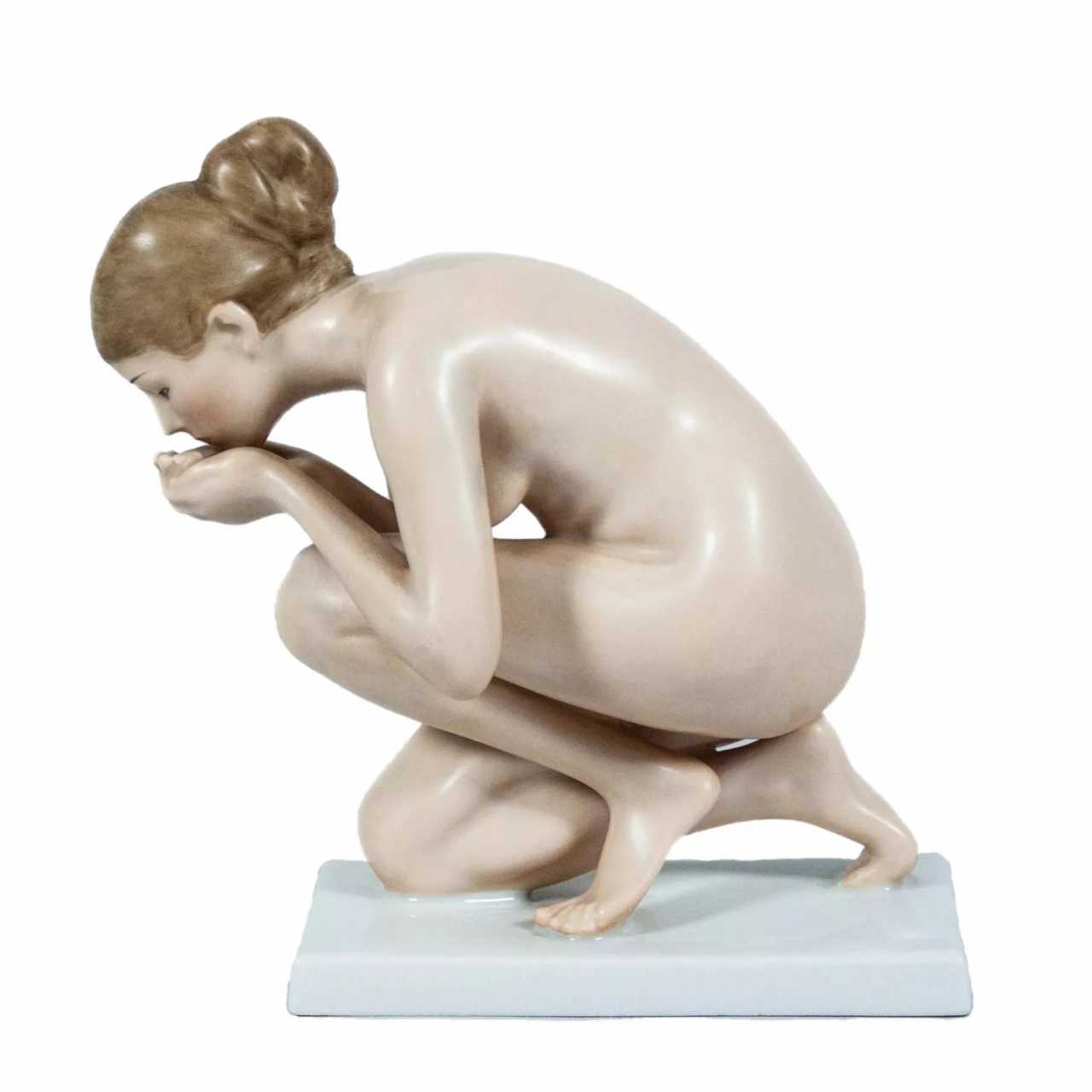 Фарфоровая фигурка Девушка пьющая воду (Die Trinkende), разработанная Эрнстом Венка (Ernst Wenk) для Rosenthal Kunstabteilung Selb. Номер модели 752-0. Подпись автора. Клеймо производителя Rosenthal Kunstabteilung Selb.