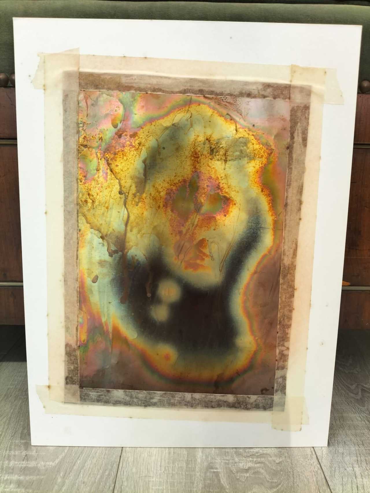 Arthur UNGER (1932- )Crafted through the intricate process of flame-painting on copper, this piece showcases an explosion of vibrant colors, from rich copper tones to iridescent pinks and greens. The unique patterns and textures are the result of intense heat transforming the metal, creating a one-of-a-kind work of art that cannot be replicated.This piece is sold without a frame.BiographyArthur Unger was born in 1932 in the city of Hespérange, Luxembourg.After graduting, he follows administration and management courses in Bruxelles, and then settle in Belgian Congo, where he had lived for 5 years, and specially with the tribes Lunda and Baluba. This long African journey is very important for the development of Arthur’s art.In 1963, back to Europe, he settles in Paris. There, he discovers the artistic life of the French Capital and makes his first drawings and gouaches.In 1968, he came back to Luxembourg, and invents a technique of drawing with Inidian Ink, and a painting technique uppon brass, using electrolytic cupper which became his favourite medium (he calls his new technique « pyrochemograms uppon cupper »).In 1970, he meets Michel Tapié ; it is a major event in the artistic life of Arthur. Tapié is very interested in Arthur’s work and writes the forewords of all the exhibitions by Arthur Unger in France and in the world. In 1980, Michel Tapié dedicated a monograph to Arthur Unger at the Galerie Sources in Paris.The personal exhibitions of the works of Arthur Unger mainly take place in France, in Luxembourg, in Germany and in Switzerland (three times at the Basel Art Fair).