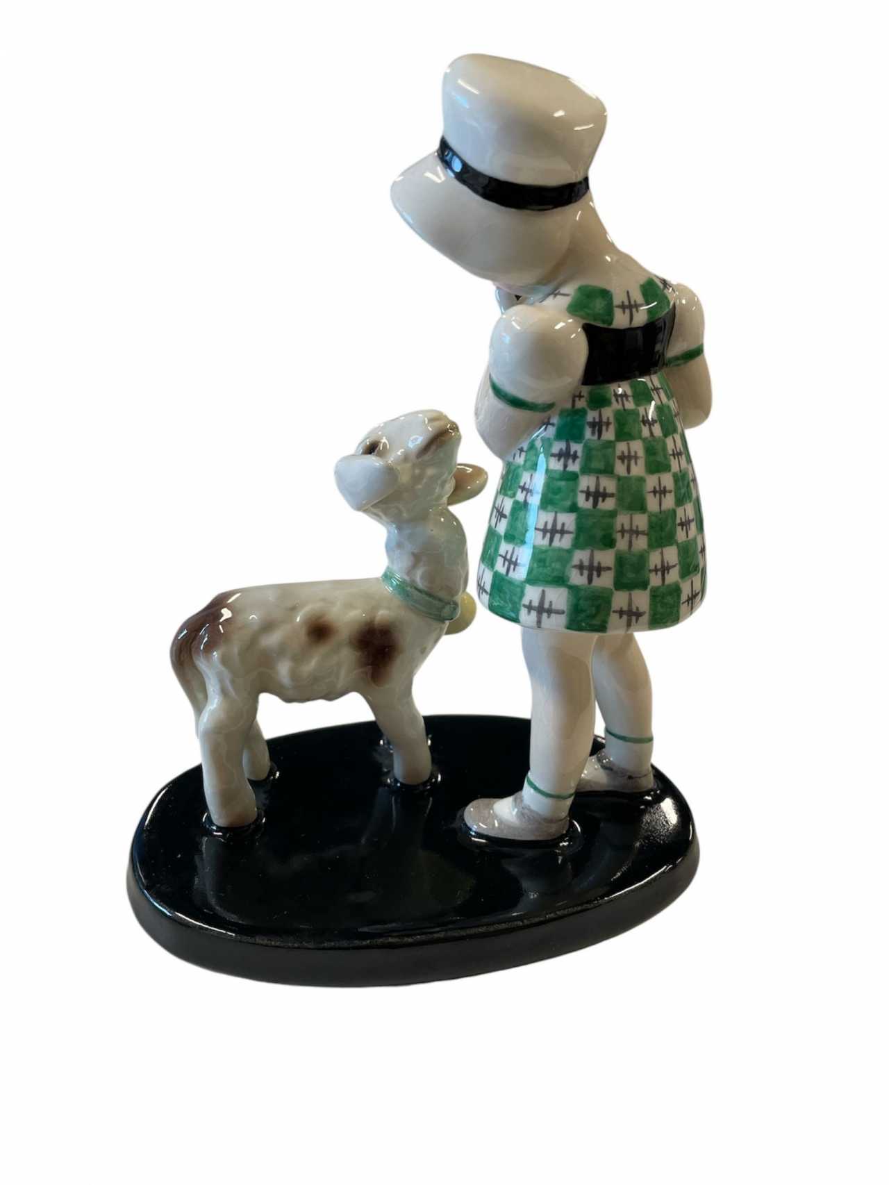 Goldscheider - Claire Weiss - Фигурка стоящей девушки в шляпе и с ягненком - Глиняная посуда Фаянс Art Nouveau 20th century г.