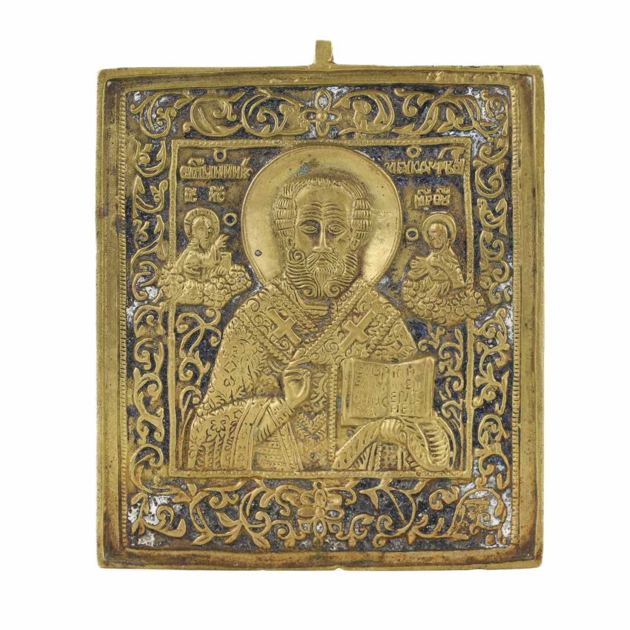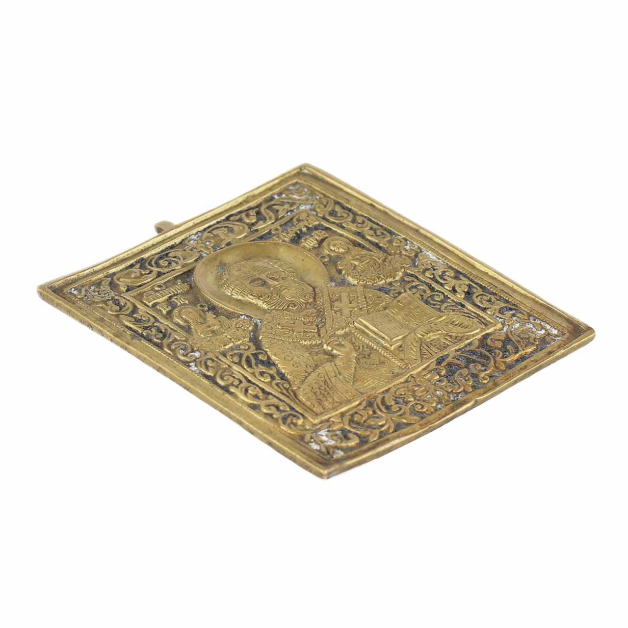 Литая икона Николай Чудотворец. Россия 19 век. Размеры :10,5х9.5 см.