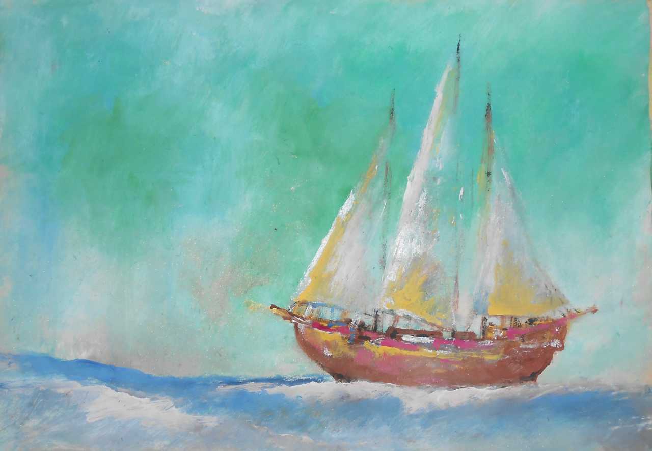 На гребне волны Бумага Смешанная техника Абстрактный субъективизм Морской сюжет