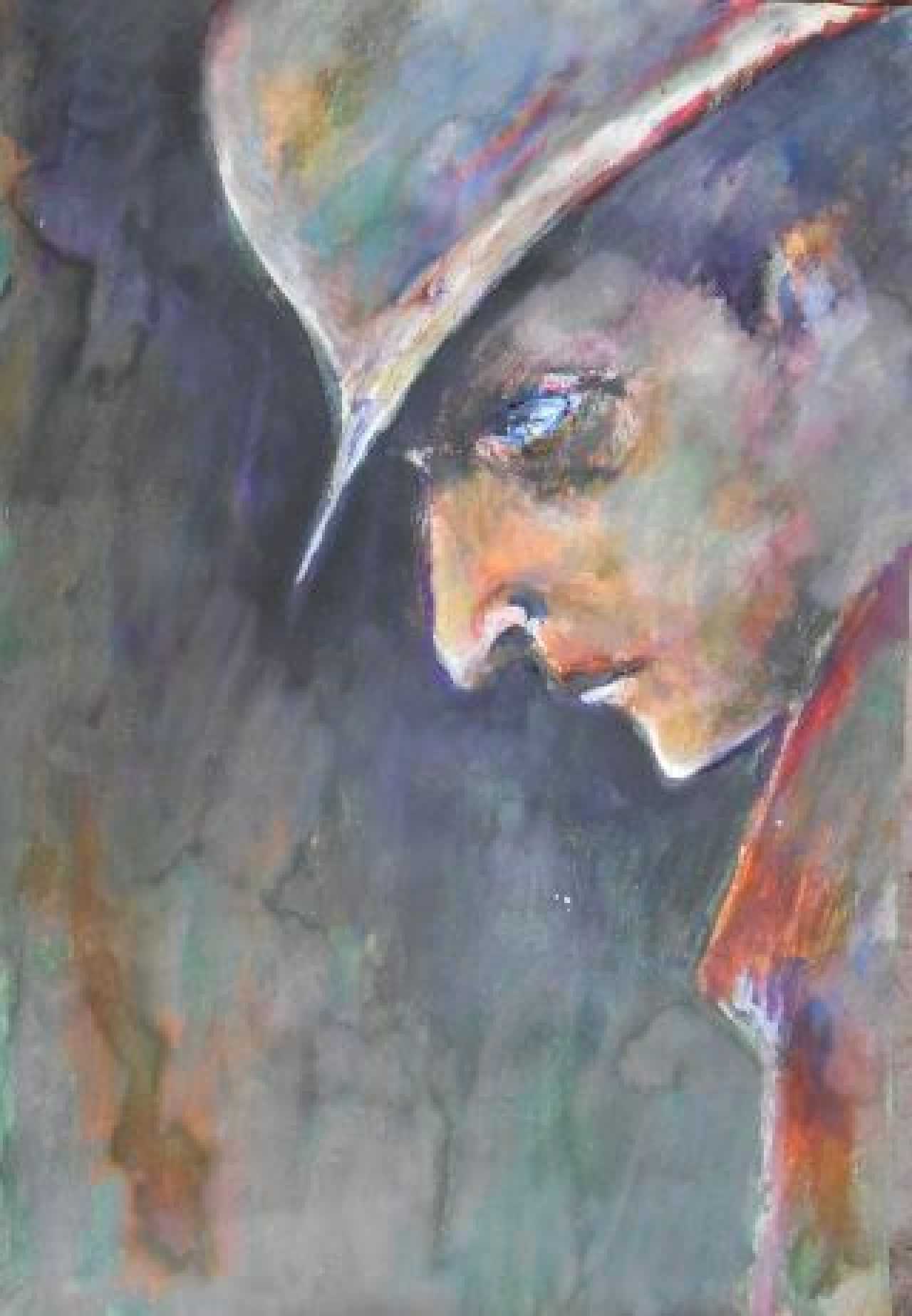 Незнакомец в шляпе Бумага Смешанная техника Абстрактный субъективизм Сюжетно-тематическая картина