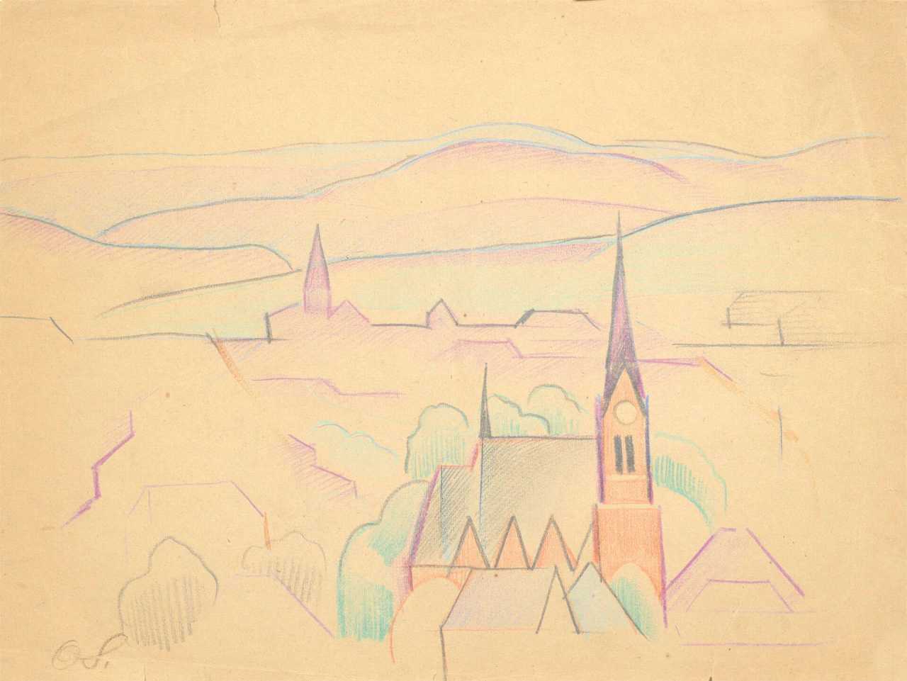 32x43 см. . 20-е годы 20 века. Бумага, смешанная техника Ото Скулме.