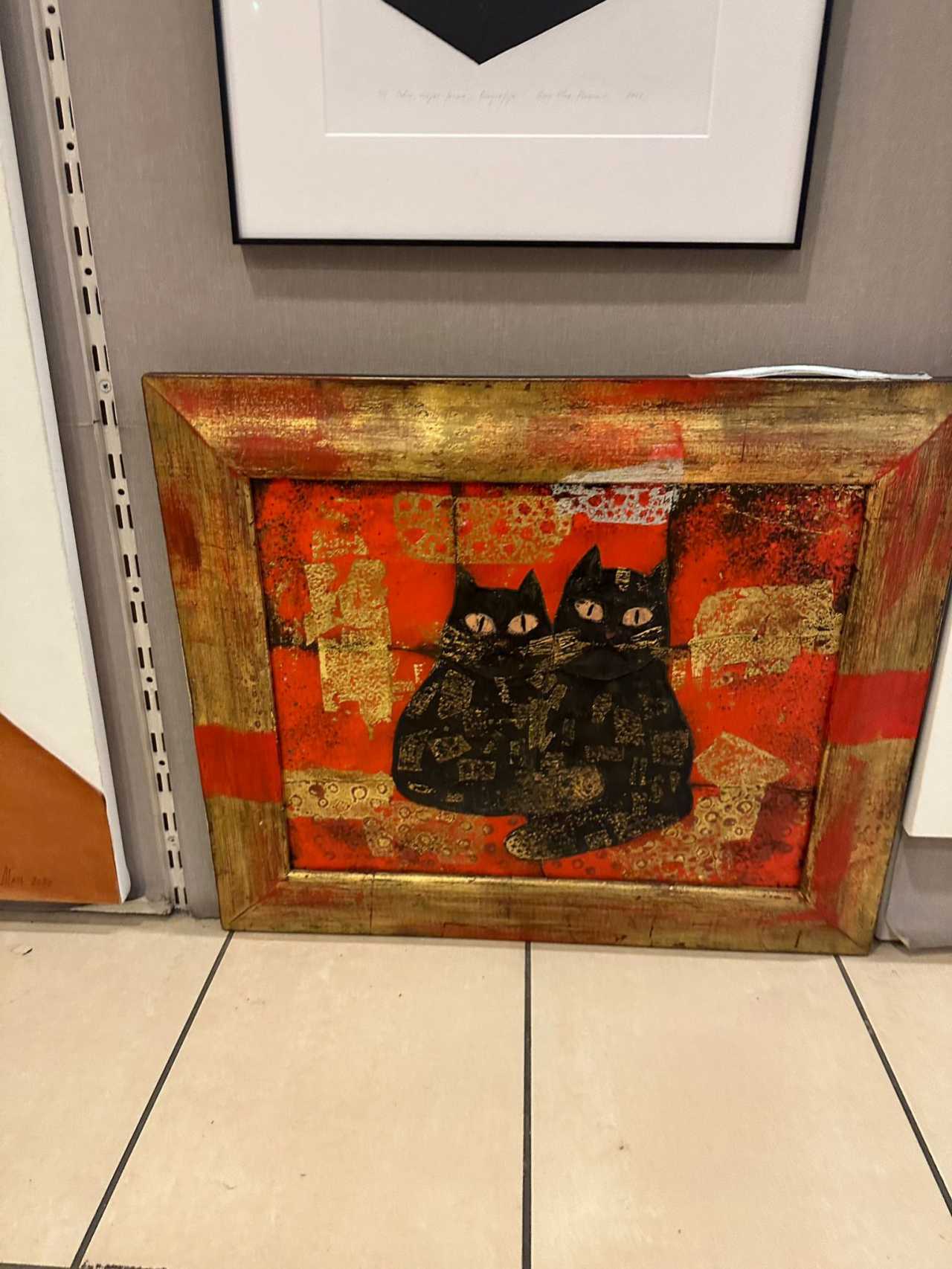 Дина Дубина, Кошачья любовь, 40 х 52 см, размер в рамке 54 х 66 см, авторская техника, эмаль медь, 2017 г.