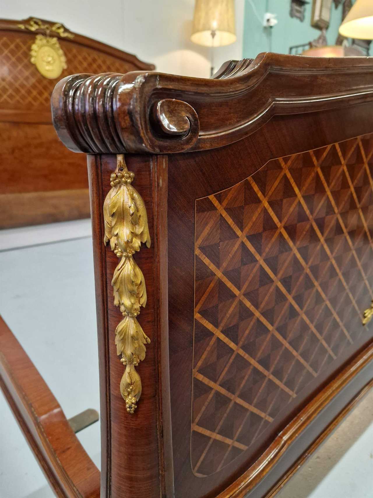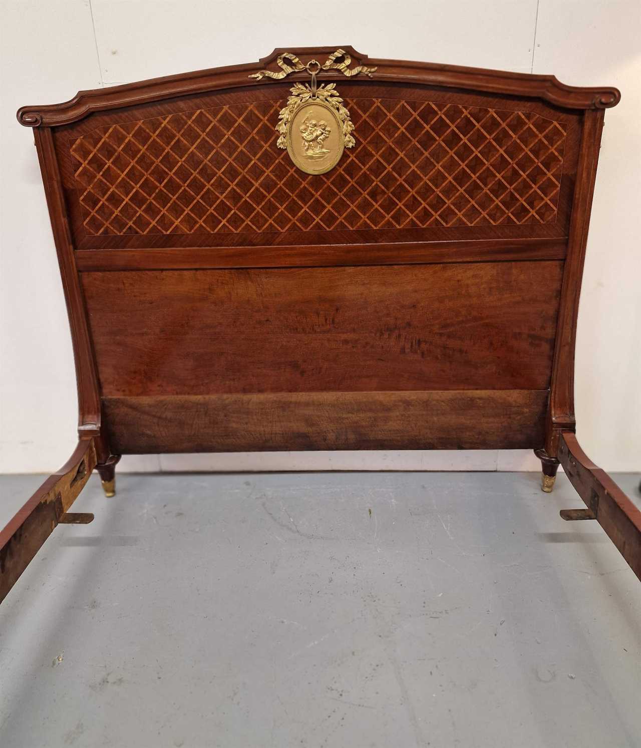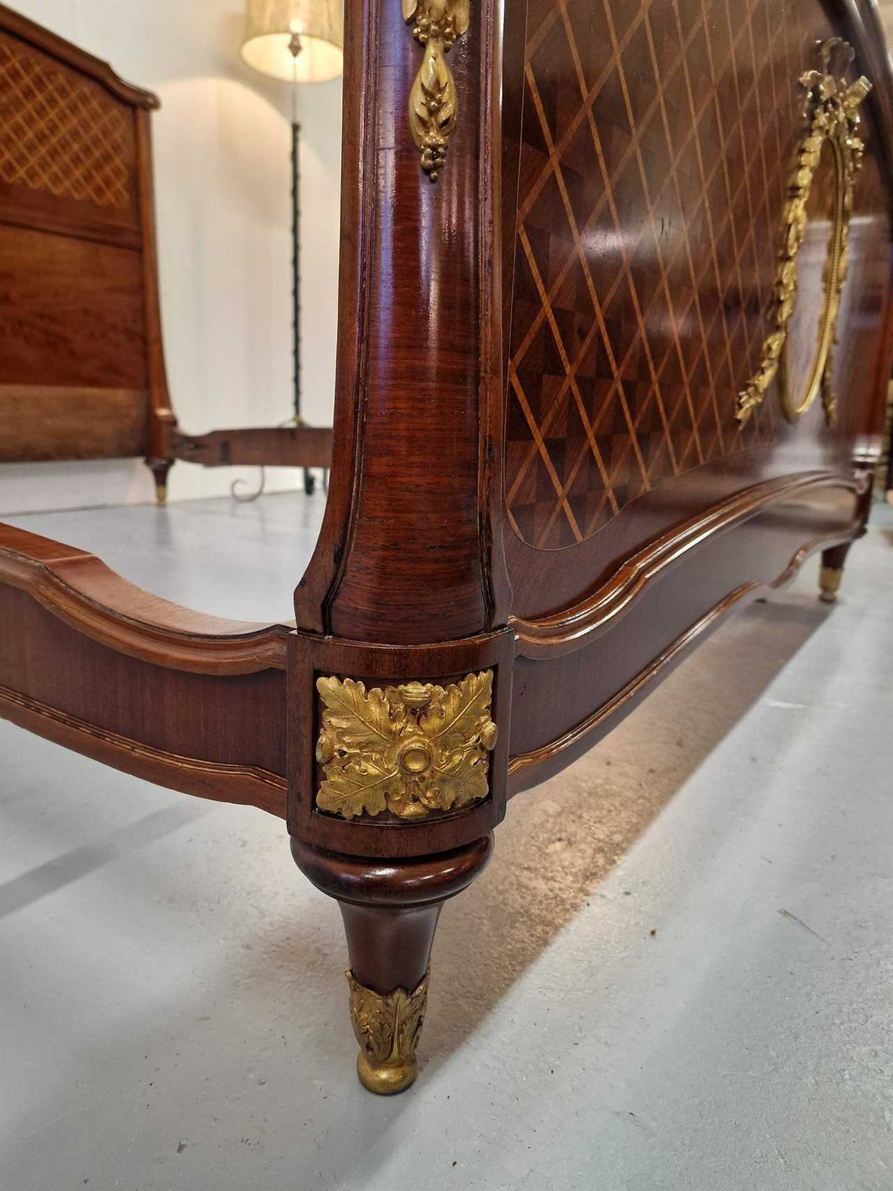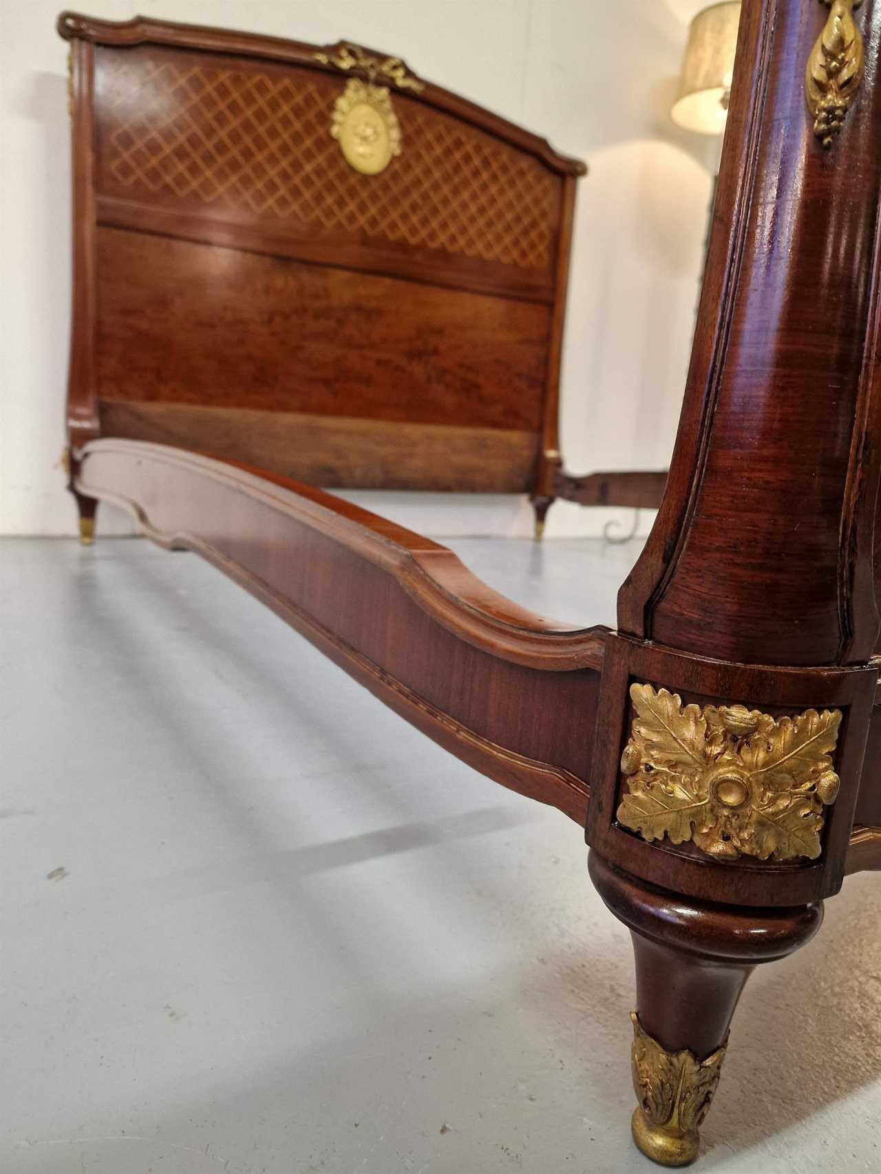 Изысканная и королевская кровать в стиле Людовика XV. Позолоченная бронза, инкрустация, красное дерево. Франция. 1860-е годы. Высота изголовья 137 и 82 см; размер матраса: 147x205 см.