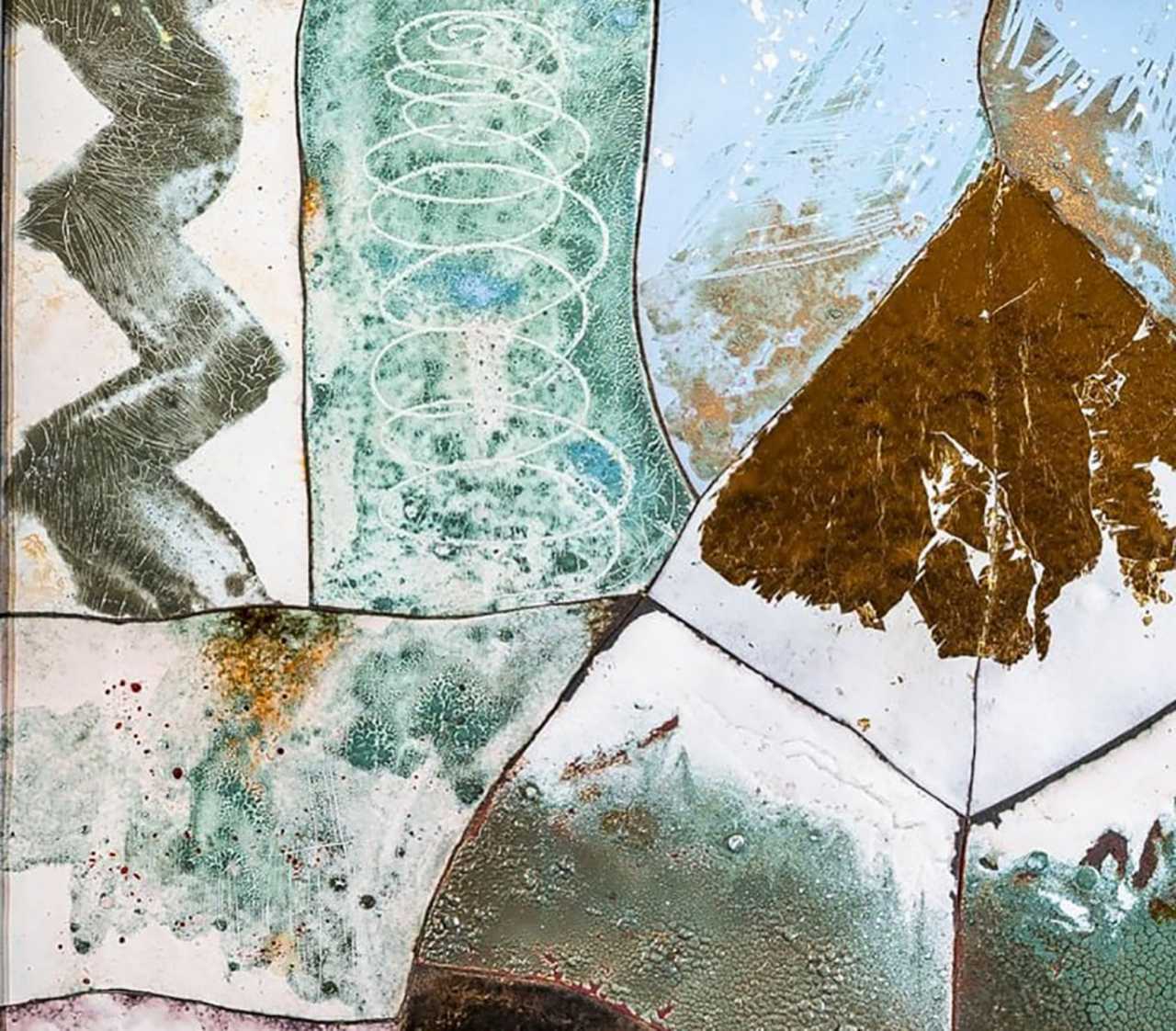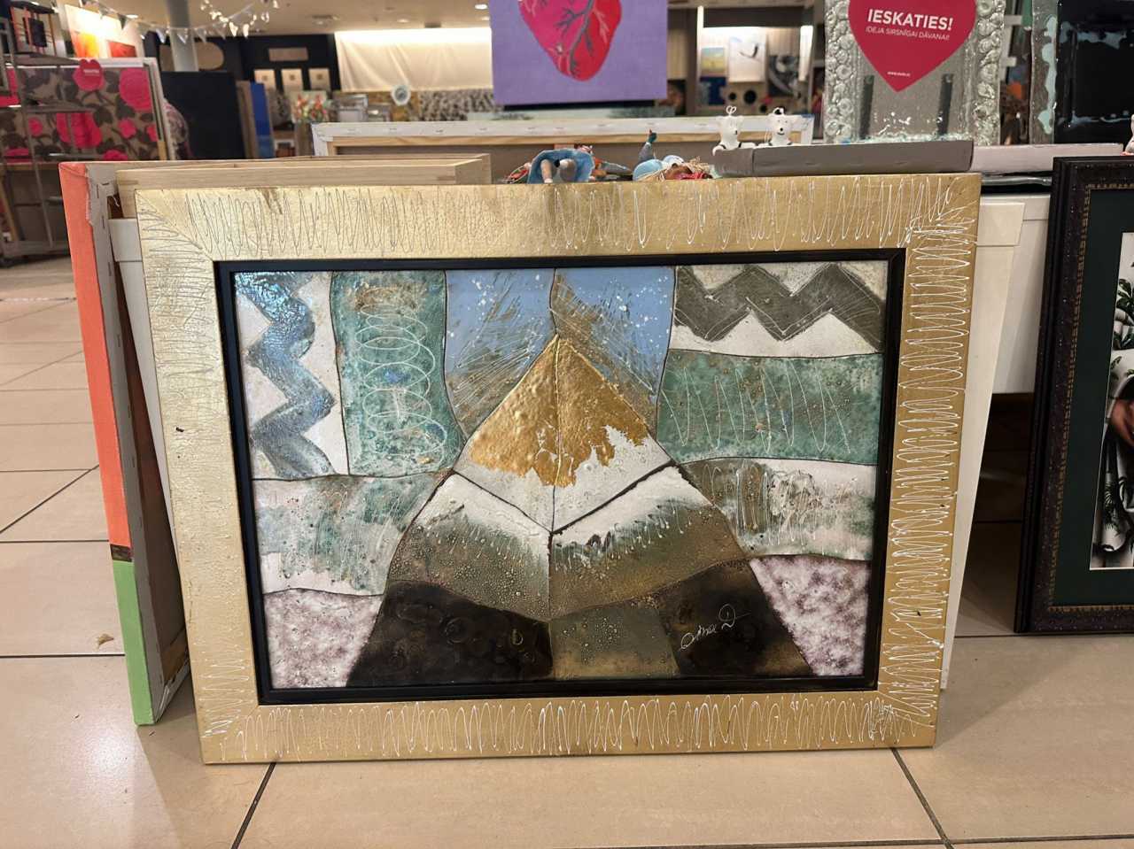 Автор: Дина Дубина, Волшебная гора, эмаль на меди, размер: 41 х 58 см, рамка 55 х 72 см, 2019 год.