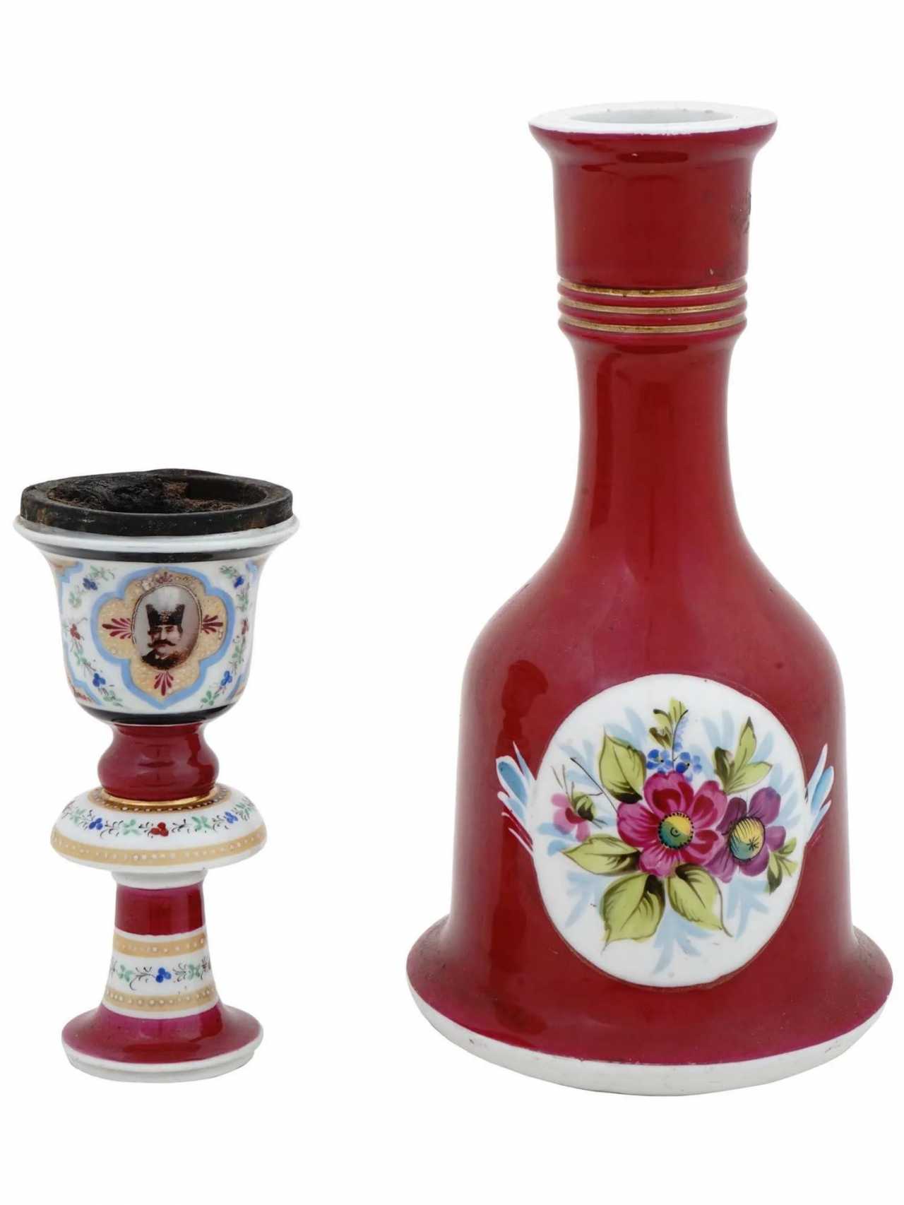 Фарфоровый русский кальян ручной росписи. Фабрика Кузнецова в Дулево. Россия. 19 век Porcelain Hand Painted Late 19th century г.