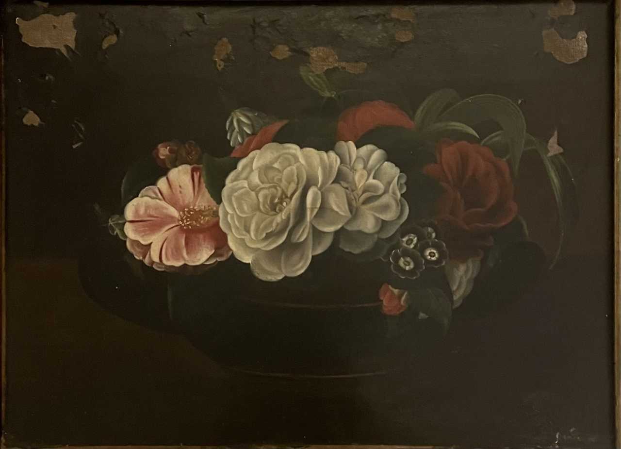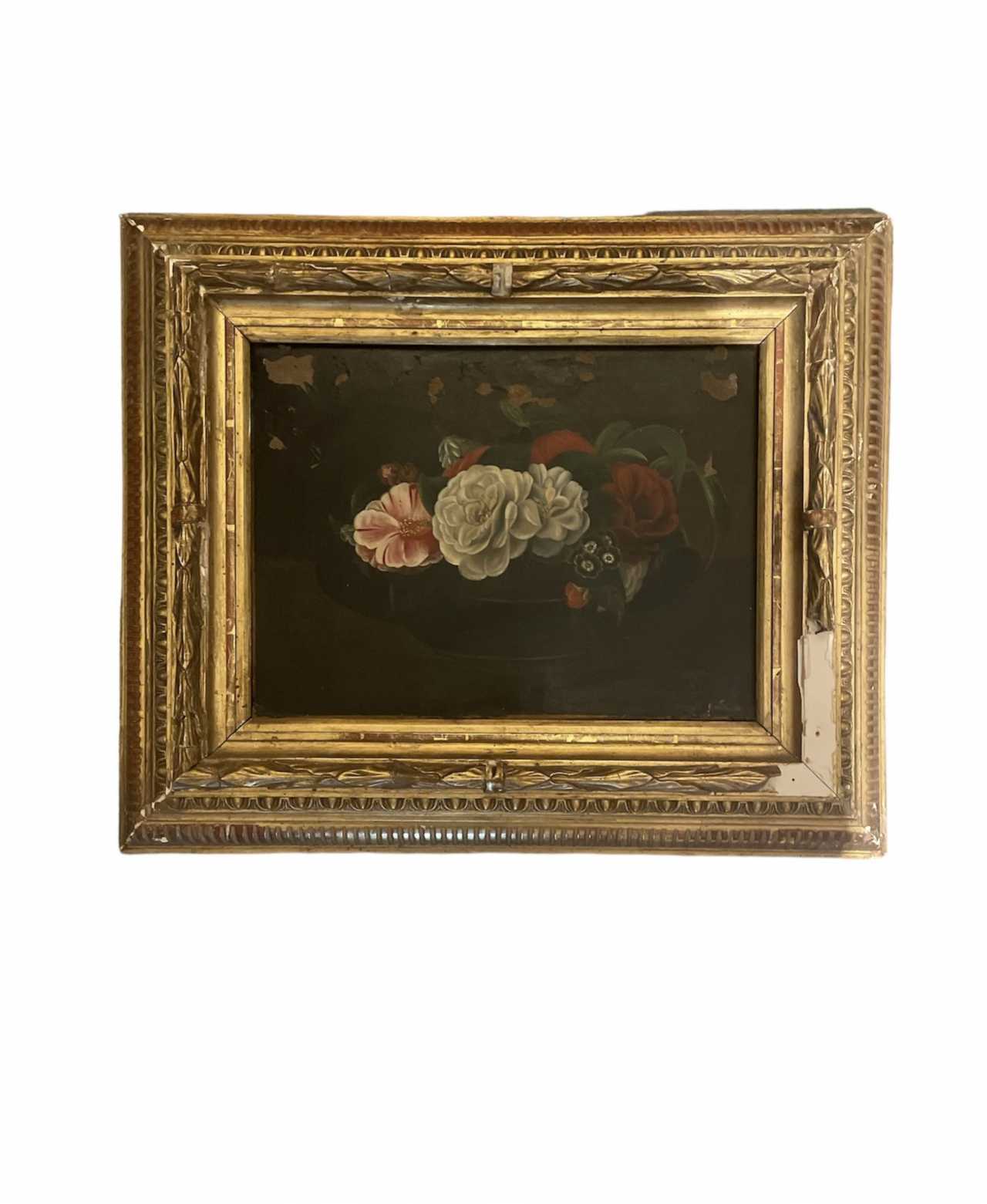 Натюрморт, холст, масло, датирован 1861 годом. Картина имеет массивную позолоченную раму; рама и картина нуждаются в реставрации. Размеры: 50 x 61 см с рамой, 32 x 41 см внутри рамы.