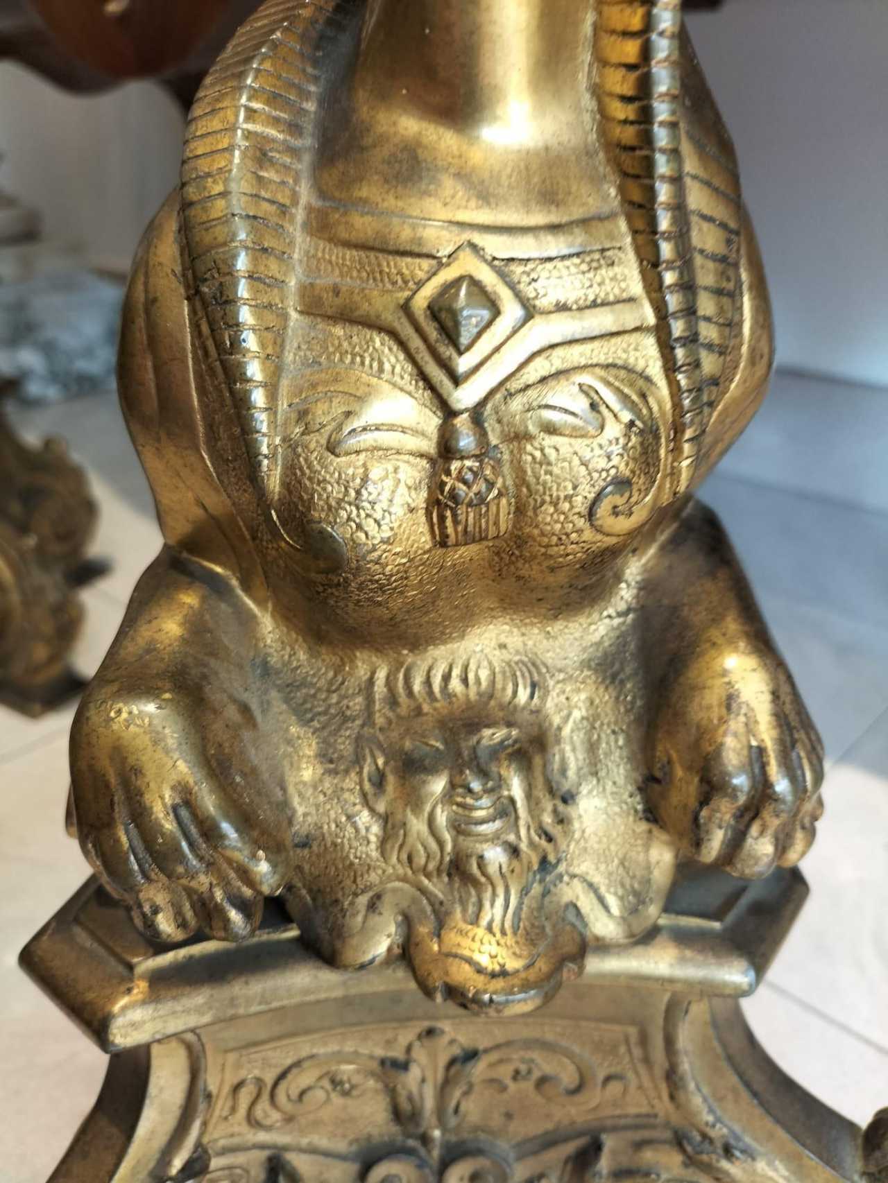 Pair of 19th Century Gilt Bronze Fire Dogs in the Ancient Egyptian Style Бронза 19th century г.