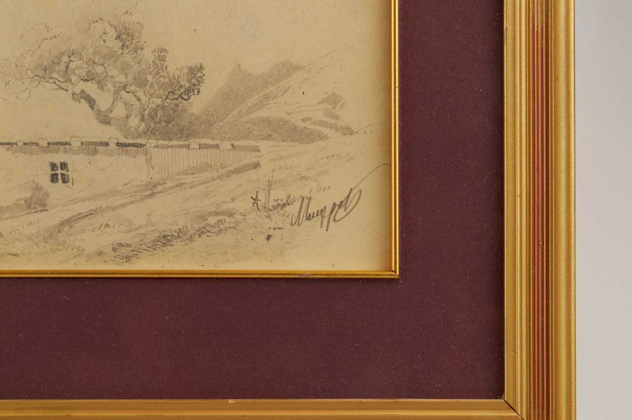 Мещерский Арсений Иванович Крымский пейзаж. Бумагакарандаш. 16х26см. Рубеж 19-20х веков.Диагональный академический рисунок фокусирует нас на углом выступающем домике, балках его крыши и дереве раскинувшемуся над ним. Работа объективизирует романтику уединенных мест Крыма. Подпись в правом нижнем углу.