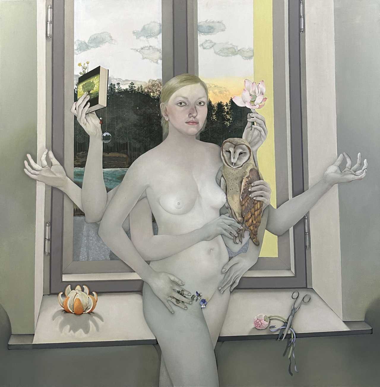 Автор: Анна Афанасьева, Пока ищу свою полку, холст, масло, размер: 120 x 120 см, год 2012