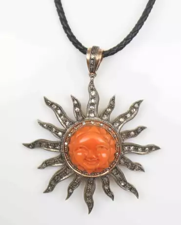 Золотой кулон с бриллиантами и ограненным кораллом Золото Other style At the turn of 19th -20th century г.