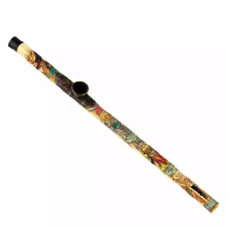 Костяная опиумная трубка с резным полихромным орнаментом в виде вельмож. Мундштук из серебра. Вес брутто: 223 г. Длина: 43,5 см.