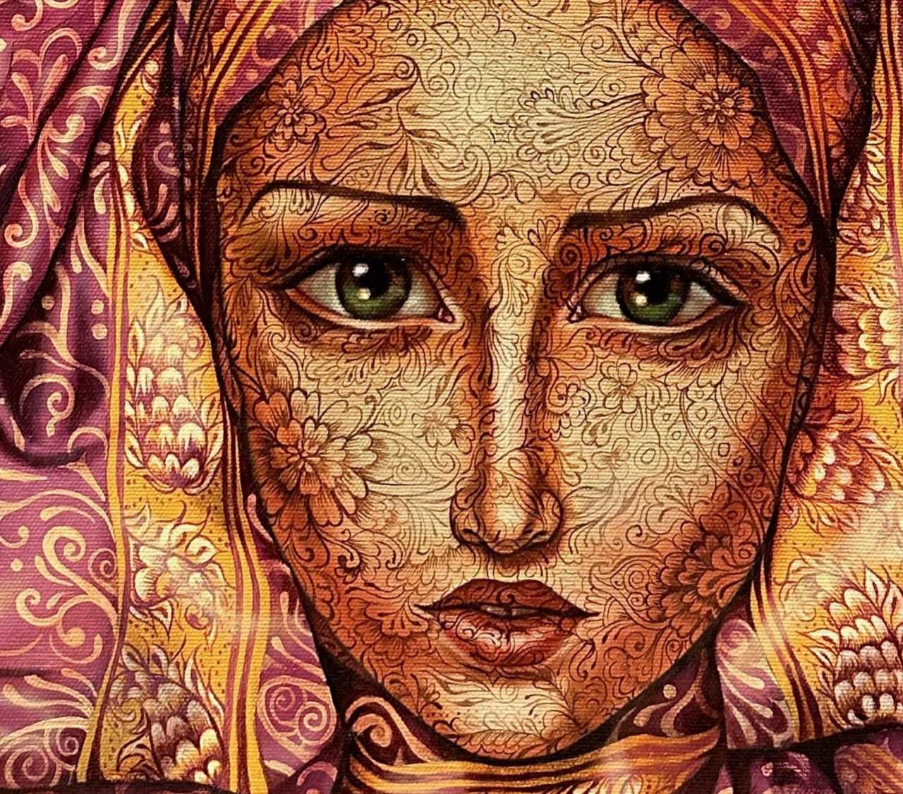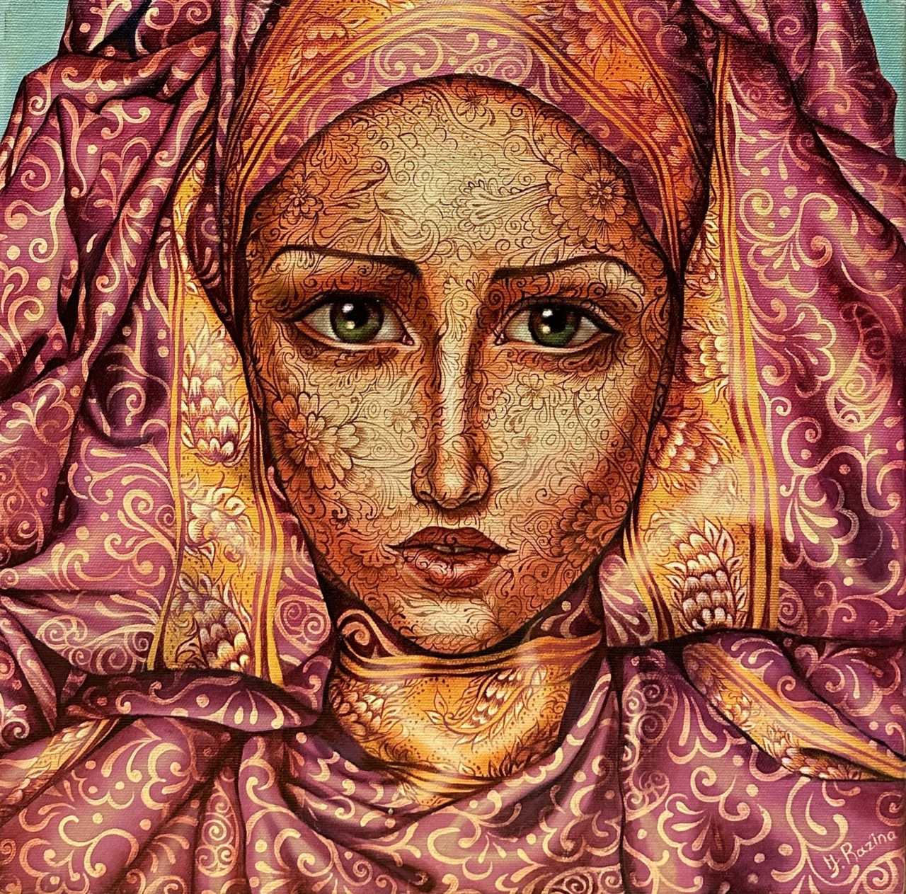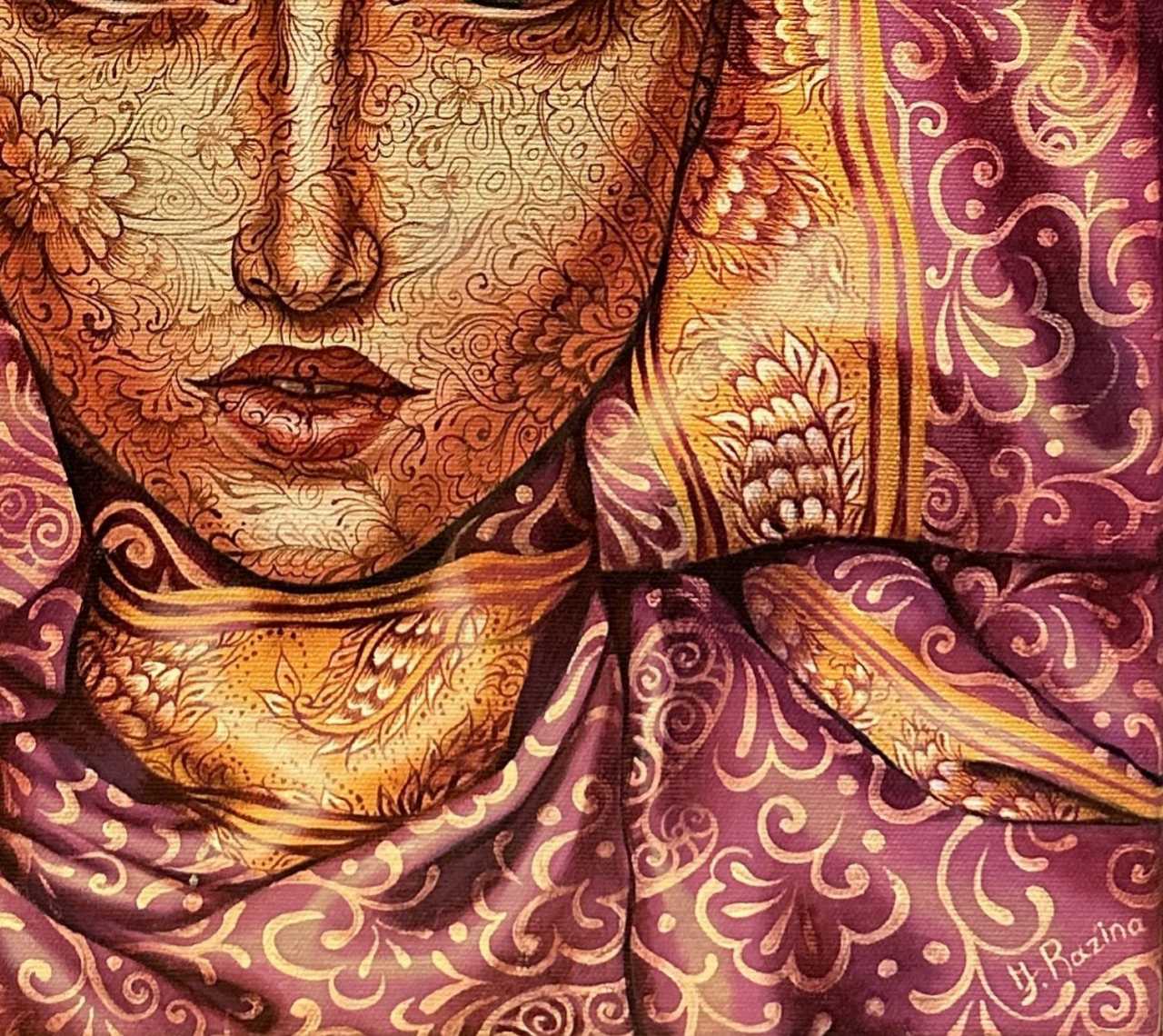 Автор: Екатерина Разина, Портрет с фиолетовым, холст, масло, размер: 40 х 40,5 см, 2011 год.