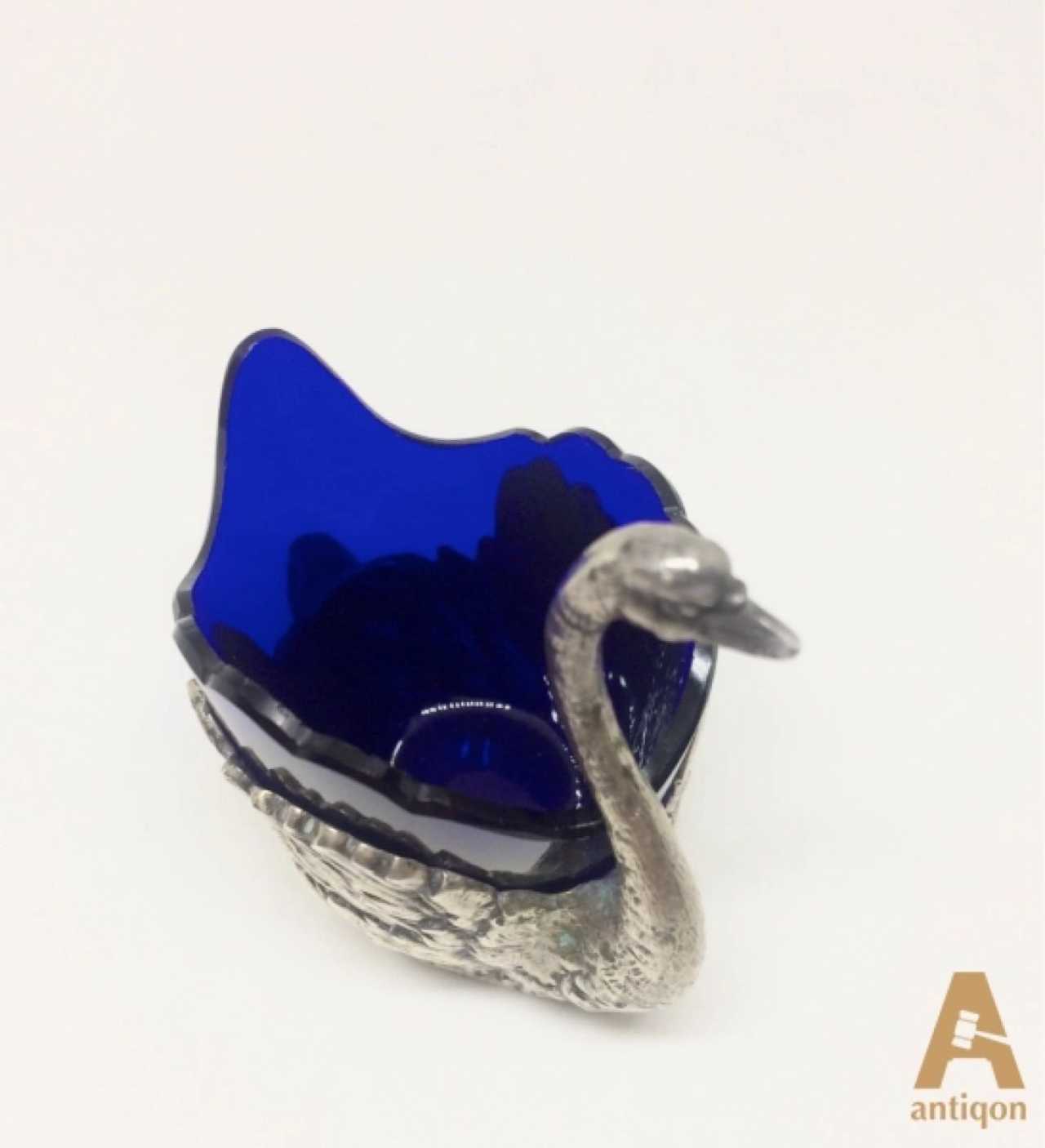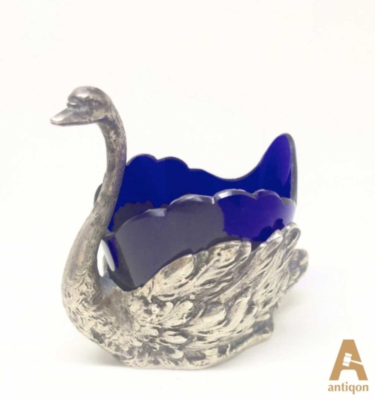 Солонка Лебедь с оригинальной вставкой из синего стекла.Вес серебра 42 гр.