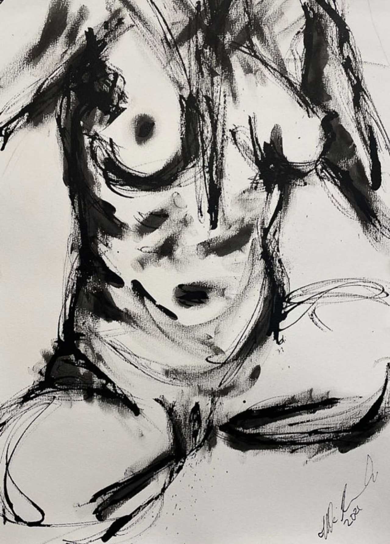 Улла Мартинмяки — финский художник-любитель, чей стиль живописи экспериментальный и порой довольно хаотичный. Ее завораживает случайность и неожиданность рисования человеческого тела. Она думает, что все тела такие интригующие и красивые. Ей хотелось бы, чтобы каждый мог смотреть на ее собственное тело с благодарностью, любовью и гордостью. Ширина 42 см, высота 59 см, бумага, смешанная техника.