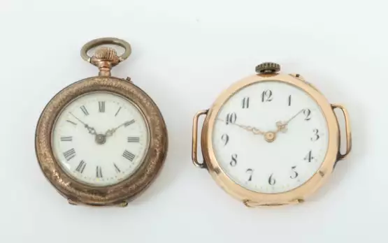 Лот 1174 | 2 Damentaschenuhren Anfang 20. Jhr., 1 x Gelbgold 585, ca. 19,5 g, Sta…