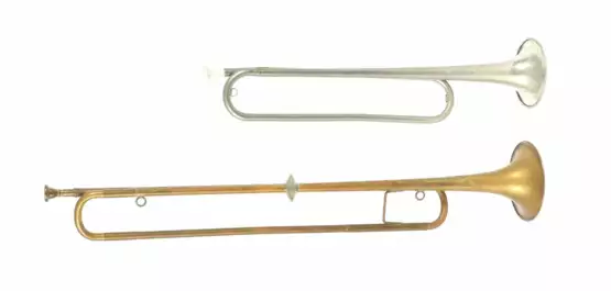 Лот 613 | 2 Fanfaren 1 x Messing, mit Mundstück, 1. H. 20. Jh., Korpus-L: 73,5 c…