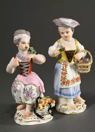 Лот 582 | 2 Meissen figurines ‘Gardener Children’ on rocaill…