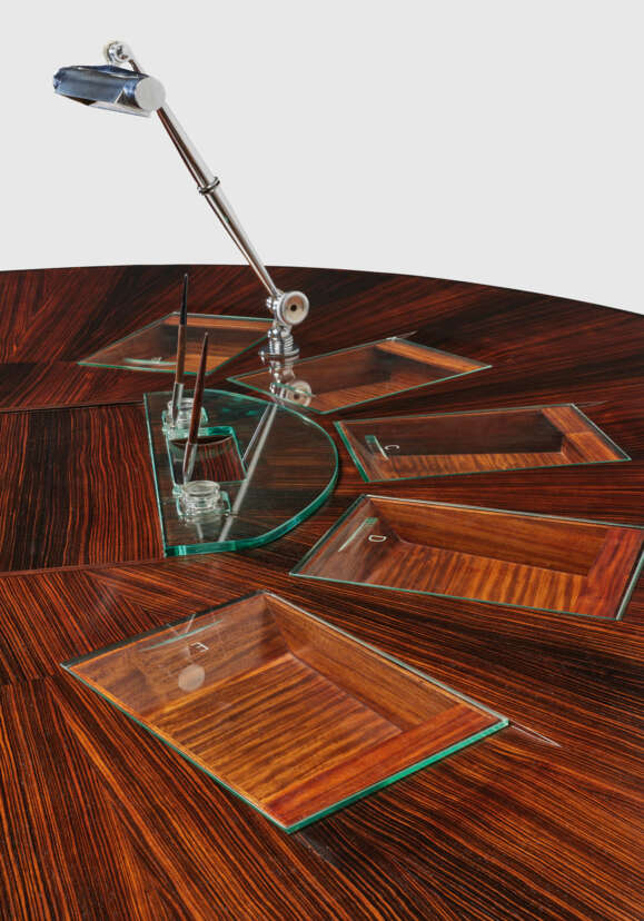 This desk model is recorded under number 1517NR in the Ruhlmann Archives, Musée des Années 30, Boulogne-Billancourt.