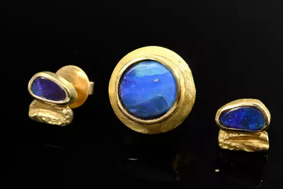 Лот 247 | 3 assorted 750 yellow gold stud earrings with blue…