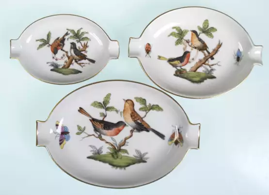 Лот 466 | 3 diverse Herend-Aschenbecher, Rothschild mit Goldrand, L. 9 cm, 11,5 cm und 13,5 cm