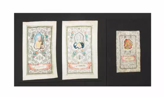 Лот 2412 | 3 Spitzenbilder "Hl. Anna"/"Hl. Elisabeth"/"Hl. Andreas"