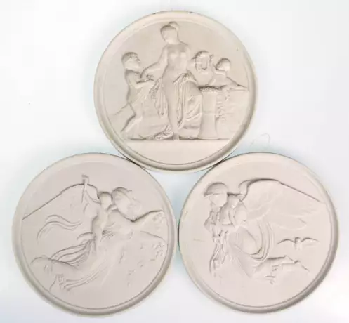 Лот 470 | 3 Wandplaketten im klassizistischen Stil, Bing & Gröndahl, nach Entwürfen von Thorvaldsen Kopenhagen, Biskuitporzellan, Dm. je 14 cm
