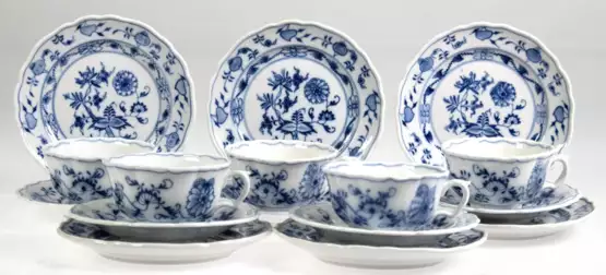 Лот 419 | 5 Teetassen mit UT und 6 Dessertteller (1 x best,) Zwiebelmuster, Stadt Meißen