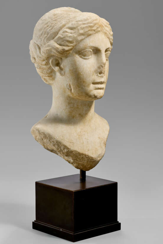 Лот 55 | A GREEK MARBLE PORTRAIT HEAD OF A WOMAN