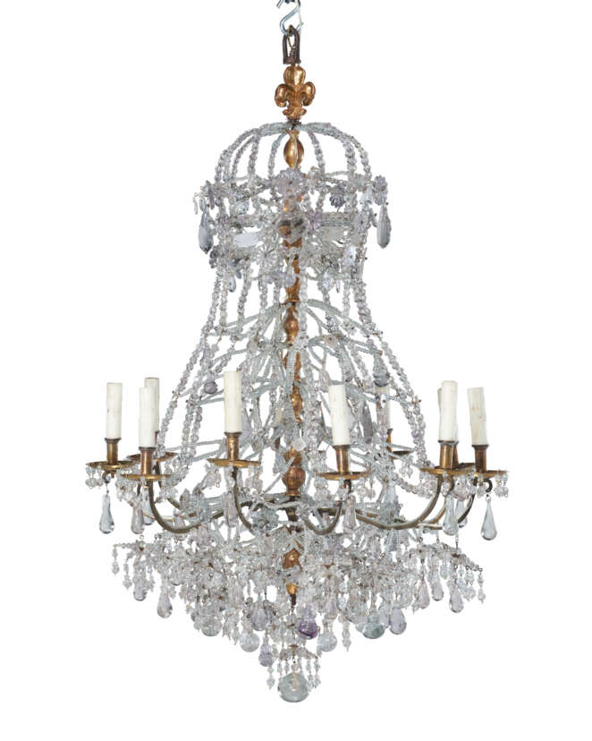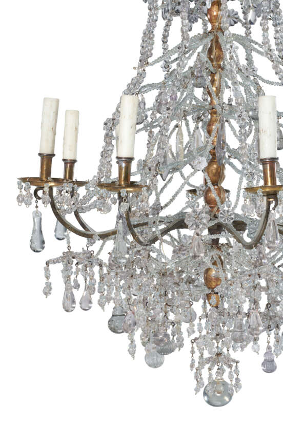 Лот 130 | A LOUIS XIV STYLE GILTWOOD, ORMOLU, CUT AND MOLDED GLASS AND ROCK CRYSTAL TEN-LIGHT ‘EN LACÉ’ CHANDELIER