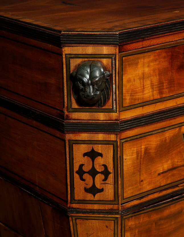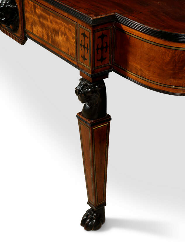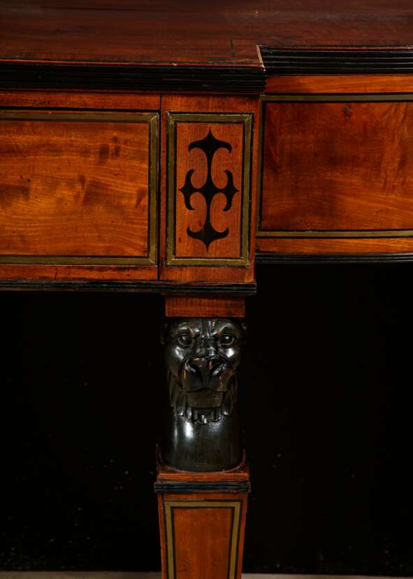 Лот 25 | A REGENCY BRASS-INLAID MAHOGANY, BRONZED AND EBONY SERVING TABLE AND PAIR OF PEDESTALS
