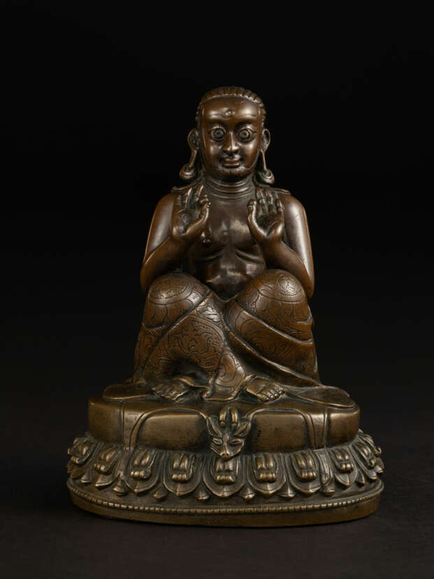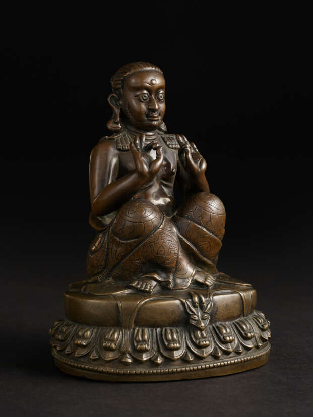 Лот 2036 | A SILVER INLAID COPPER ALLOY FIGURE OF PADAMPA SANGYE