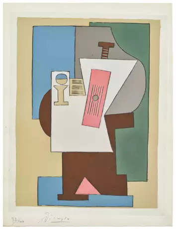 Guitare et partition sur guéridon, from Dix Pochoirs