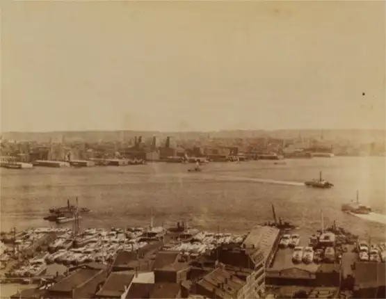 Interessantes Album mit 48 Orig.-Fotografien mit Ansichten von New York, darunter eine kleine Serie der 1883 erbauten Brooklyn Bridge, zum damaligen Zeitpunkt die längste Hängebrücke der Welt. - Mit diversen Hafenansichten, Freiheitsstatue, Broadway, Stewart Building, Fifth Ave. Hotel, Grand Central Depot, Windsor Hotel, Central Park (darunter auch Schlittschuhlaufen), Elevated Railroad, Brighton Pier u. a. - Kartonbll. wellig. Ecken bestoßen, Rücken stärker beschabt. - - Vorderer Innendeckel mit Exlibris (MSC ?) sowie 2 Bll. mit Sammlerstempel "Bibliothek St. Gabriel - Mödling bei Wien". - - Interesting album with orig. photographs with views of New York, appr. 1890, including a small series of the Brooklyn Bridge built in 1883. With 48 orig. photographs mounted on boards, with titles in white letters. Boards weavy. Corners bumped, spine stronger scraped. - With private exlibris and 2 stamps of the library St. Gabriel in Mödling near Vienna.