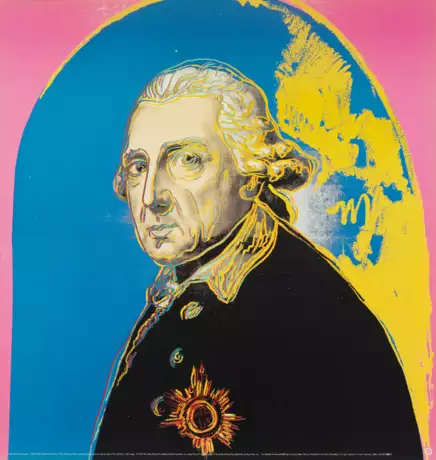 Farboffset/festes Kunstdruckpapier, 1993. Nach der gleichnamigen Farbserigraphie Warhols von 1986. Copyright The Andy Warhol Foundation for the Visual Arts, Inc.; Hrsg. te Neues Publishing Company, New York, und Achenbach Art Edition, Düsseldorf. Blatt 65 cm x 61,5 cm.
