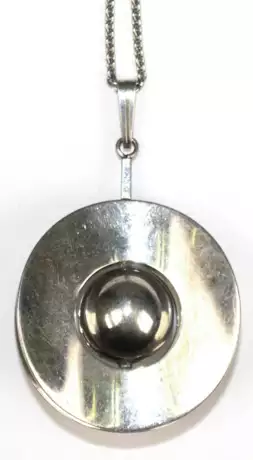 Лот 787 | Anhänger an Kette, 925er Silber, runder Anhänger mit mittiger Kugel, Ges.-Gew. 22,94 g, L. (mit Öse) 5,5 cm, Ketten-L. 60 cm