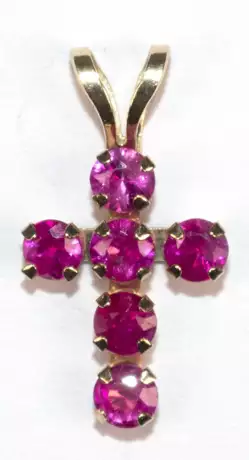 Лот 920 | Anhänger "Kreuz“, 416er GG, 10 kt., mit 6 Rubinen besetzt 0,55 ct, ca. 1,6 x 1,8 cm