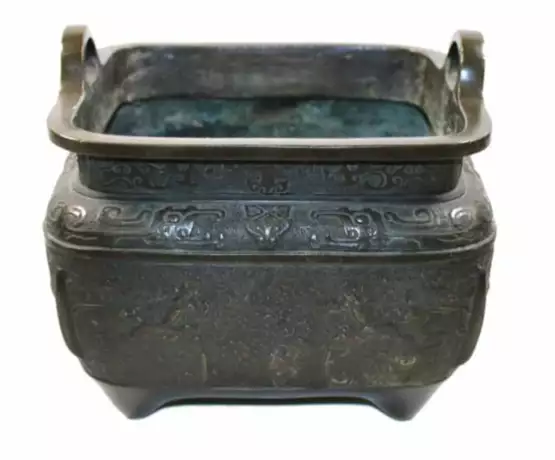 Food Vessel mit archaischem Dekor u. Phönix. Wohl 18.Jh. 23,5 x 27 x 27 cm.