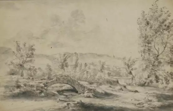Am Oberrand ein schmaler Papierstreifen angerandet und die ursprünglich fehlende Tuschlinie ergänzt, verso an mehreren Stellen Papierabrieb, der aber recto nicht sichtbar ist. Provenienz: Sammlung J. Bang (nicht bei Lugt). Der Name Bang gehört einer Künstlerfamilie, deren Vertreter in Nürnberg im 16. und 17. Jahrhundert tätig war.