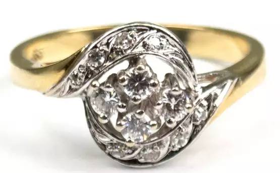 Лот 781 | Brillant-Ring, 585er GG/ WG, durchbrochener Ringkopf mit 12 Brillanten von zus. 0,3 ct. besetzt (punziert), Ges.-Gew. 3,46 g, RG 56