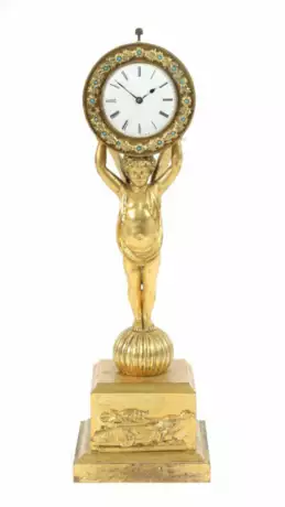 Лот 1210 | Bronze d'oré-Kaminuhr mit Amorfigur Ende 19. Jh./um 1900, Emailleziffe…