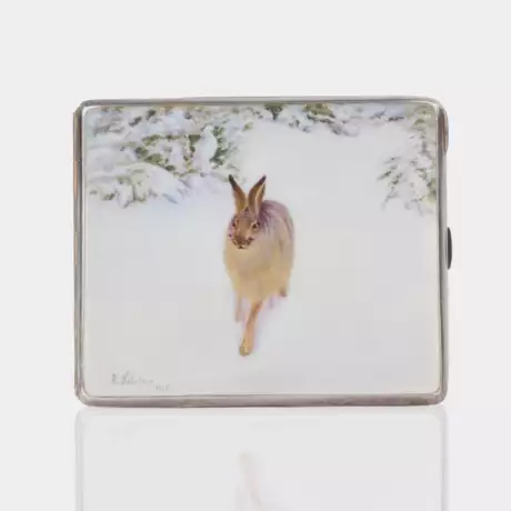 Лот 332 | Bruno Andreas Liljefors (Uppsala 1860 - Stockholm 1939). Zigaretten-Etui mit Malerei 'Hase im Schnee'.